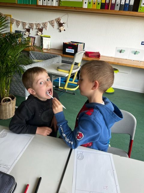 Die Zweitklässler hatten ein buntes Willkommensprogramm auf die Beine gestellt, das sich gewaschen hatte: Mit einem Gedicht, einem flotten Tanz und einem fröhlichen Lied zeigten sie, was in ihnen steckt. Danach ging es für unsere neuen Schulstarter direkt zur allerersten Unterrichtsstunde – begleitet von niemand Geringerem als unseren drei tierischen Superhelden: Affe Affi, Hund Hugo und Maus Mara! Zusammen wurde gestaunt, gekichert und die ersten Abenteuer im Klassenzimmer erlebt.