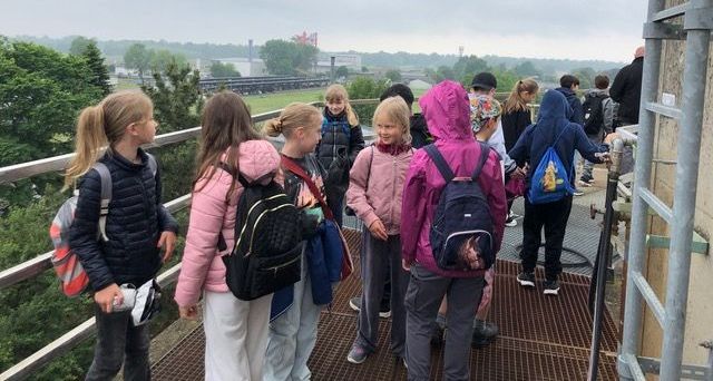 Im Unterricht hatten sie sich bereits mit den Fragen beschäftigt, wie unser Abwasser wieder sauber wird und warum wir Wasser sparen müssen. In der Kläranlage konnten die Kinder diesen Fragen noch einmal genauer auf den Grund gehen. Leo, der die Klasse herumgeführt hat, hat alle Becken toll erklärt und die Fragen der Kinder beantwortet. Auf den Bildern sieht man die Kinder auf dem Nachklärbecken und den Faultürmen.