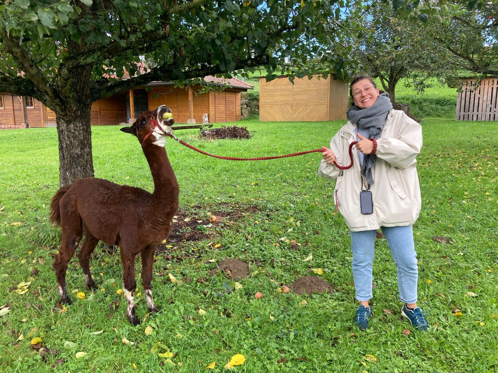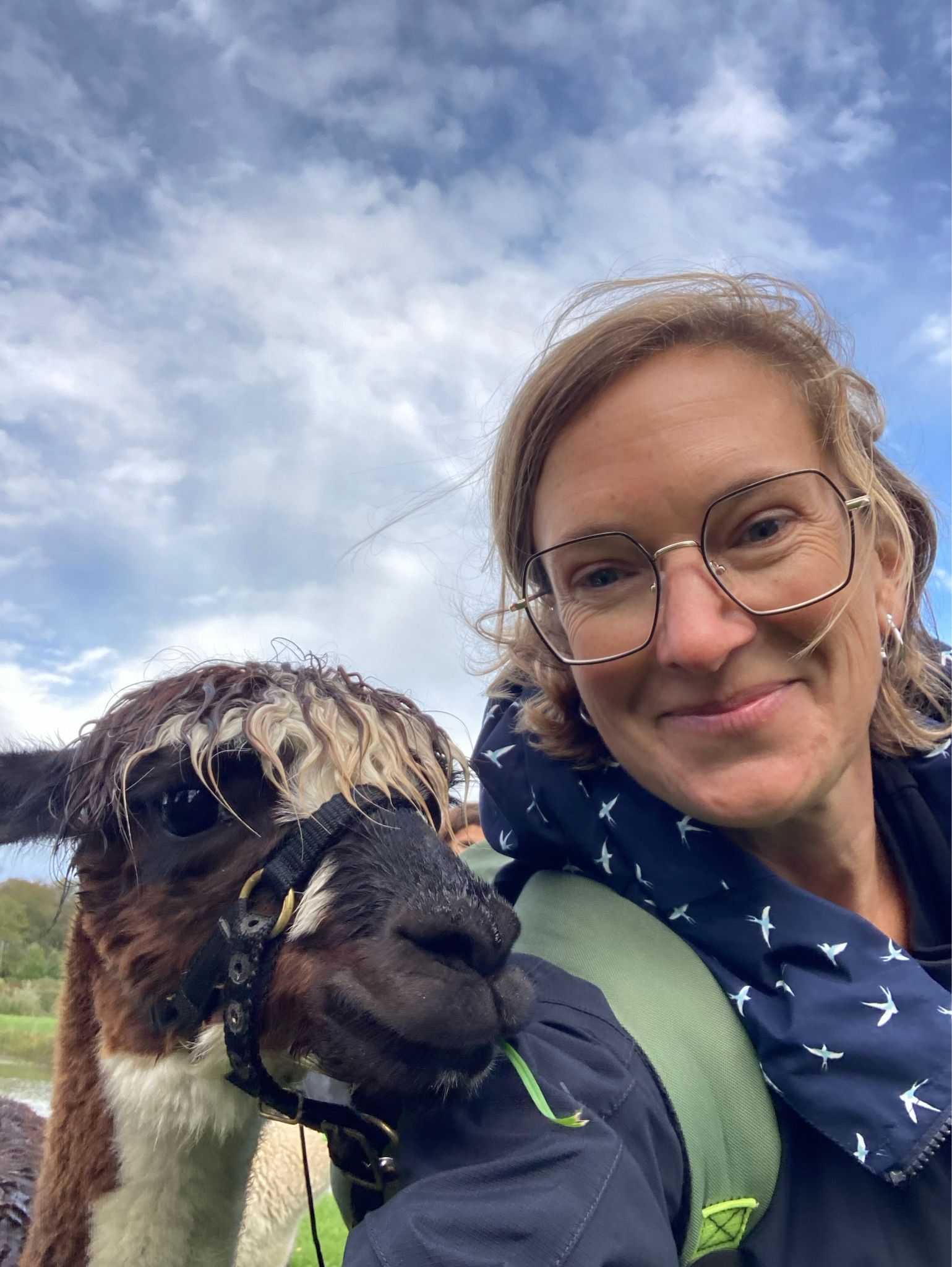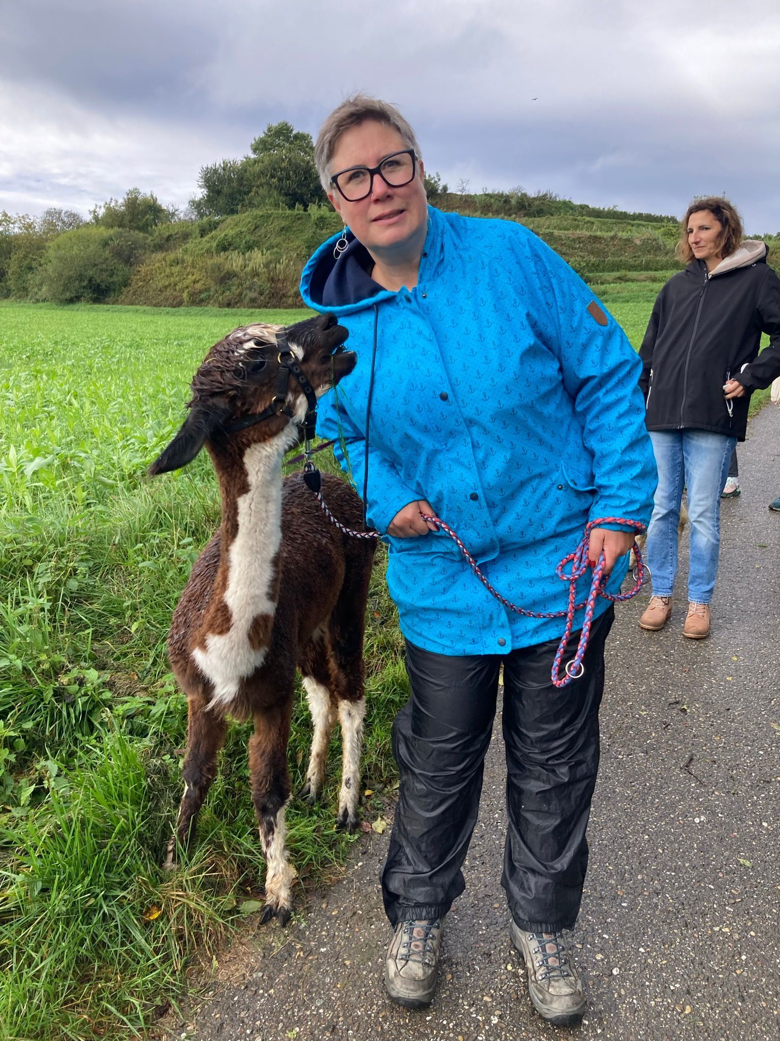 Hoch motiviert machte sich das Team auf nach Ettenheimweiler zu Alpawaki. Dort warteten schon Popcorn, Brunhilde, Keks, Schoko, Luca, Tilda, Stella und einige weitere Alpakas und Lamas, um gemeinsam eine herrliche Wanderung mit uns zu machen.